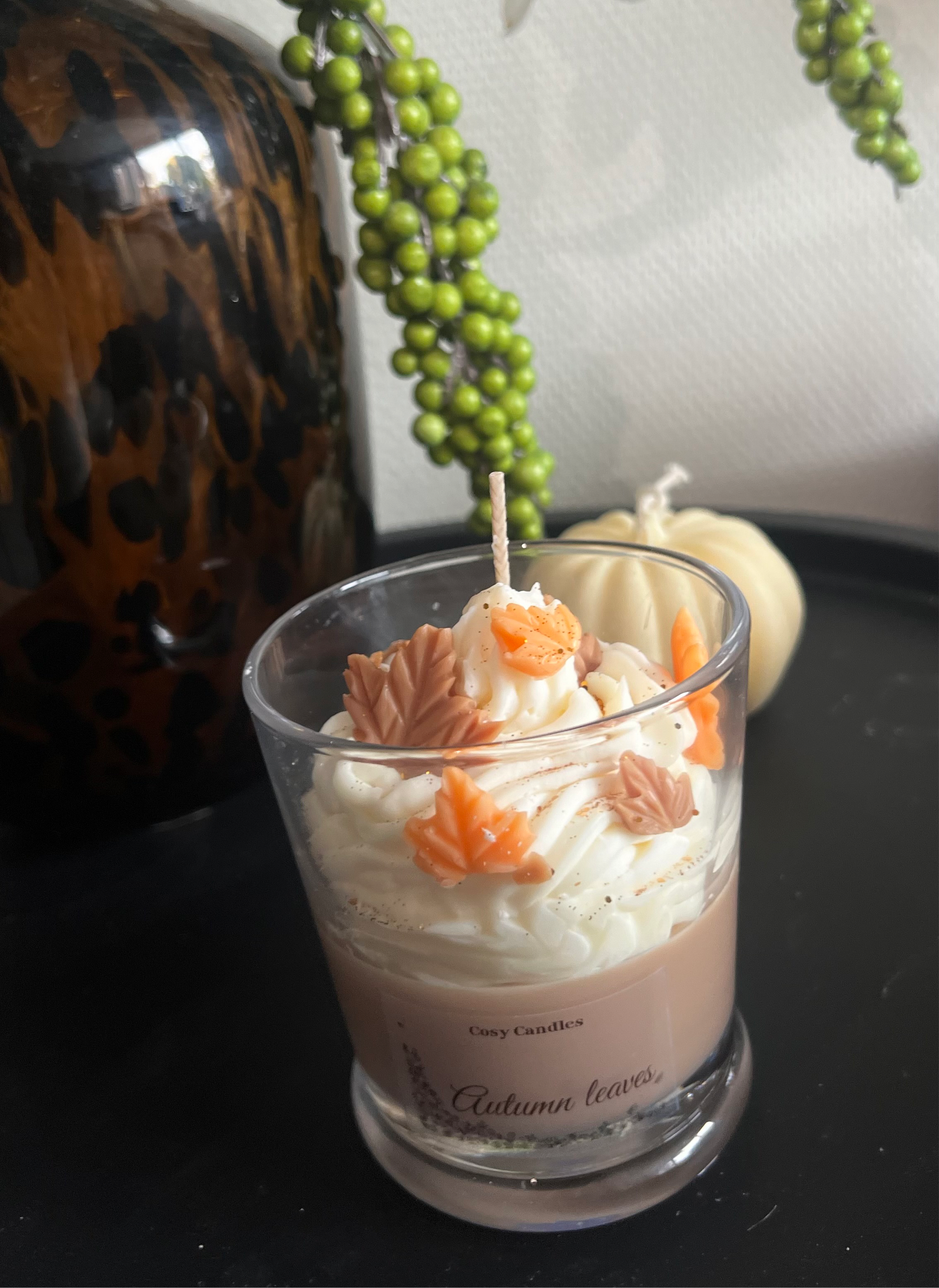 Deze sfeervolle kaars met de geur Autumn Leaves vangt de essentie van een wandeling door een herfstbos. De kaars is prachtig versierd met oranje en bruine blaadjes die subtiel rondom de kaars zijn geplaatst, wat een warme en natuurlijke uitstraling geeft. De geur Autumn Leaves combineert aardse tonen van gevallen bladeren met een vleugje hout, mos en een hint van frisse herfstlucht. Wanneer aangestoken, verspreidt de kaars een uitnodigende geur die de ruimte vult met de charme van de herfst. Een perfecte toevoeging aan je interieur om de gezelligheid van het seizoen in huis te halen!