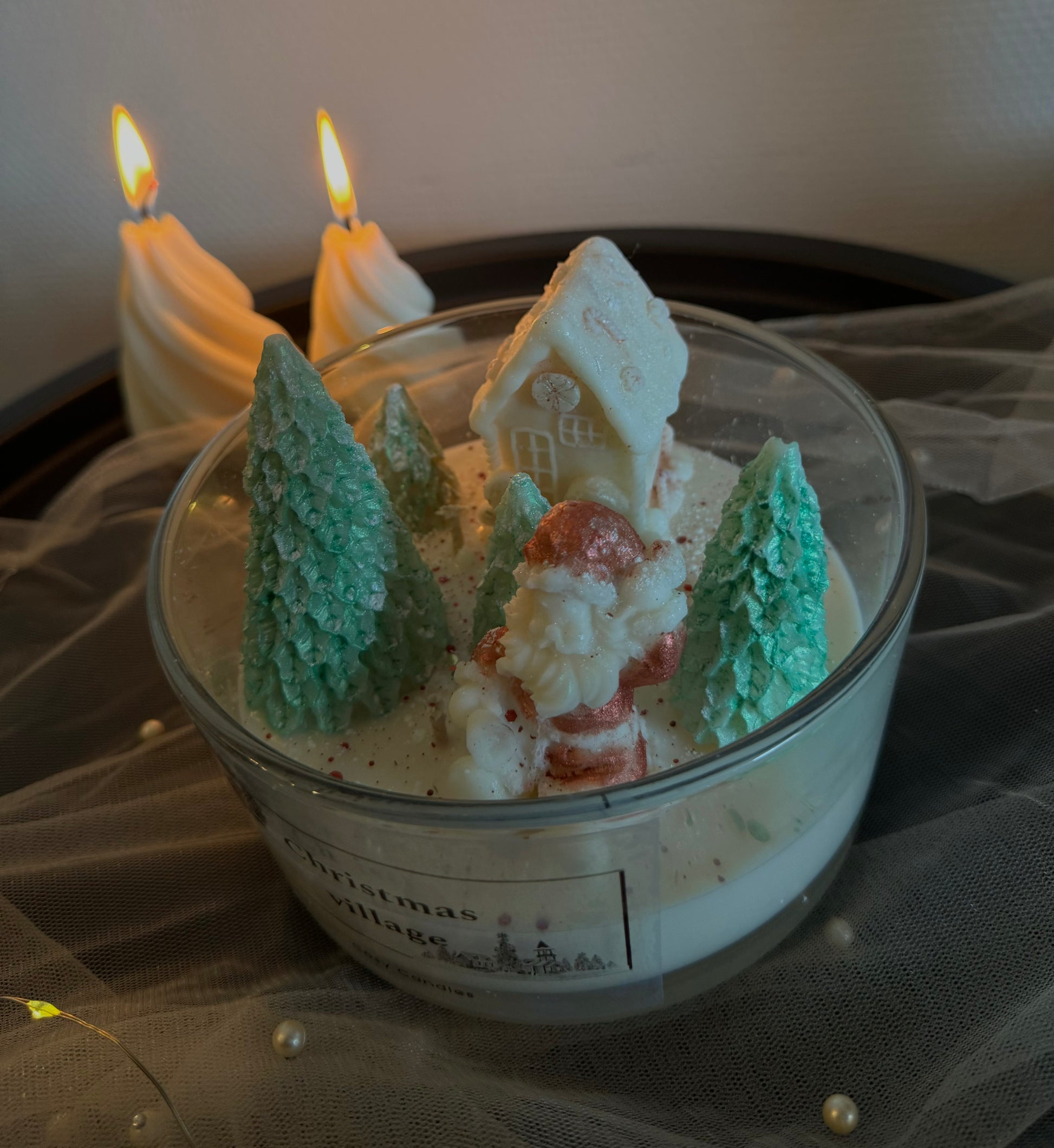 Haal de charme van een winterdorp in huis met de Christmas Village geurkaars, gepresenteerd in een prachtige schaal. De geur is geïnspireerd op de Yankee Candle en brengt de verfrissende geur van een besneeuwd dennenbos tot leven. Het parfum opent met sprankelende tonen van jeneverbes en muntblaadjes, gaat over in hartnoten van bessen en sparrenhout, en wordt afgerond met diepe, aardse basisnoten van den en musk. Een verfijnde, winterse geur die perfect is om de feestdagen mee te vieren.