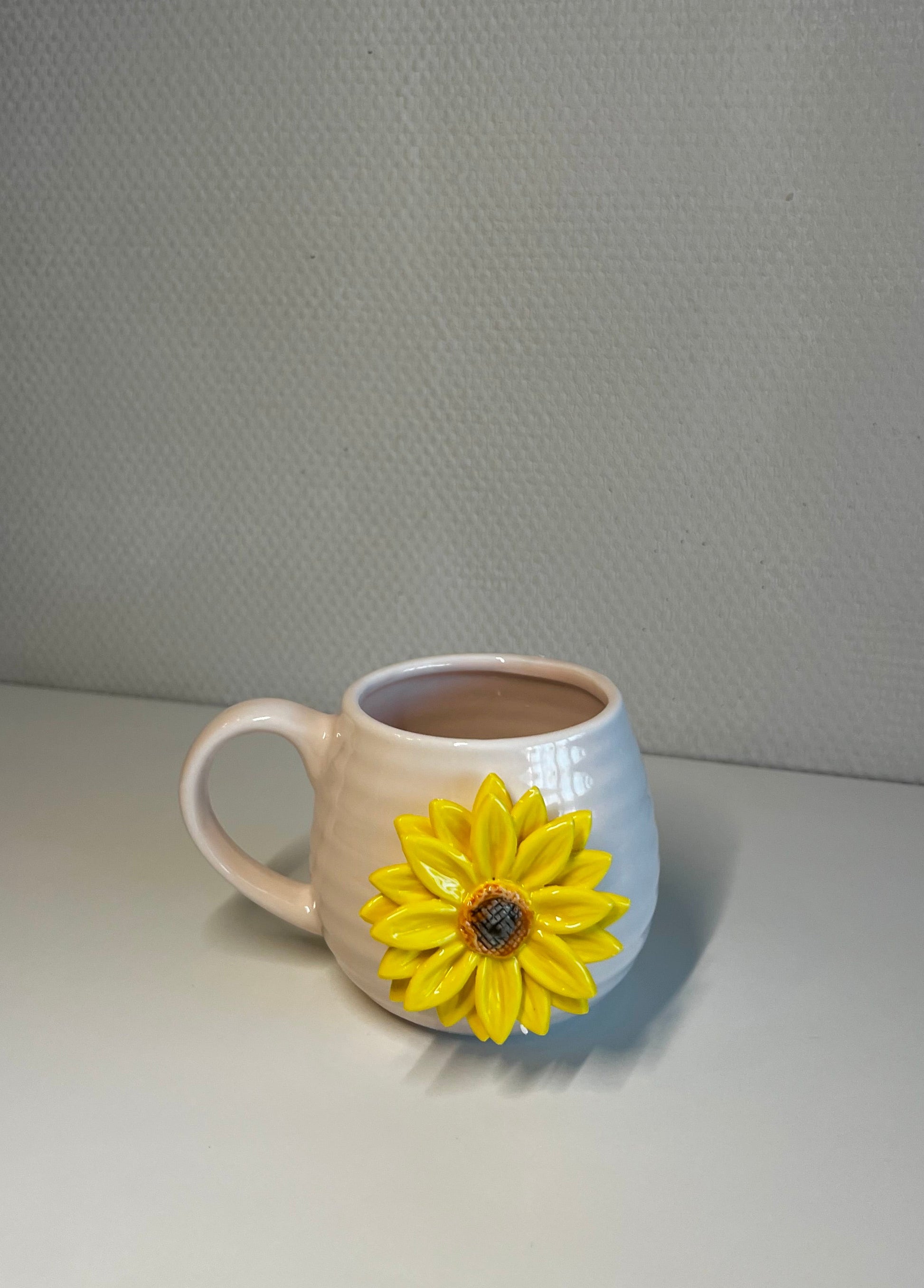 Vrolijk je dag op met deze ronde keramische mok, versierd met een mooie 3D zonnebloem. Deze stijlvolle mok is perfect om een warme en opbeurende sfeer toe te voegen aan je dagelijkse momenten en om te genieten van je favoriete warme drankje. Inhoud 450 ml. Niet geschikt voor gebruik in de magnetron. Alleen met de hand afwassen.